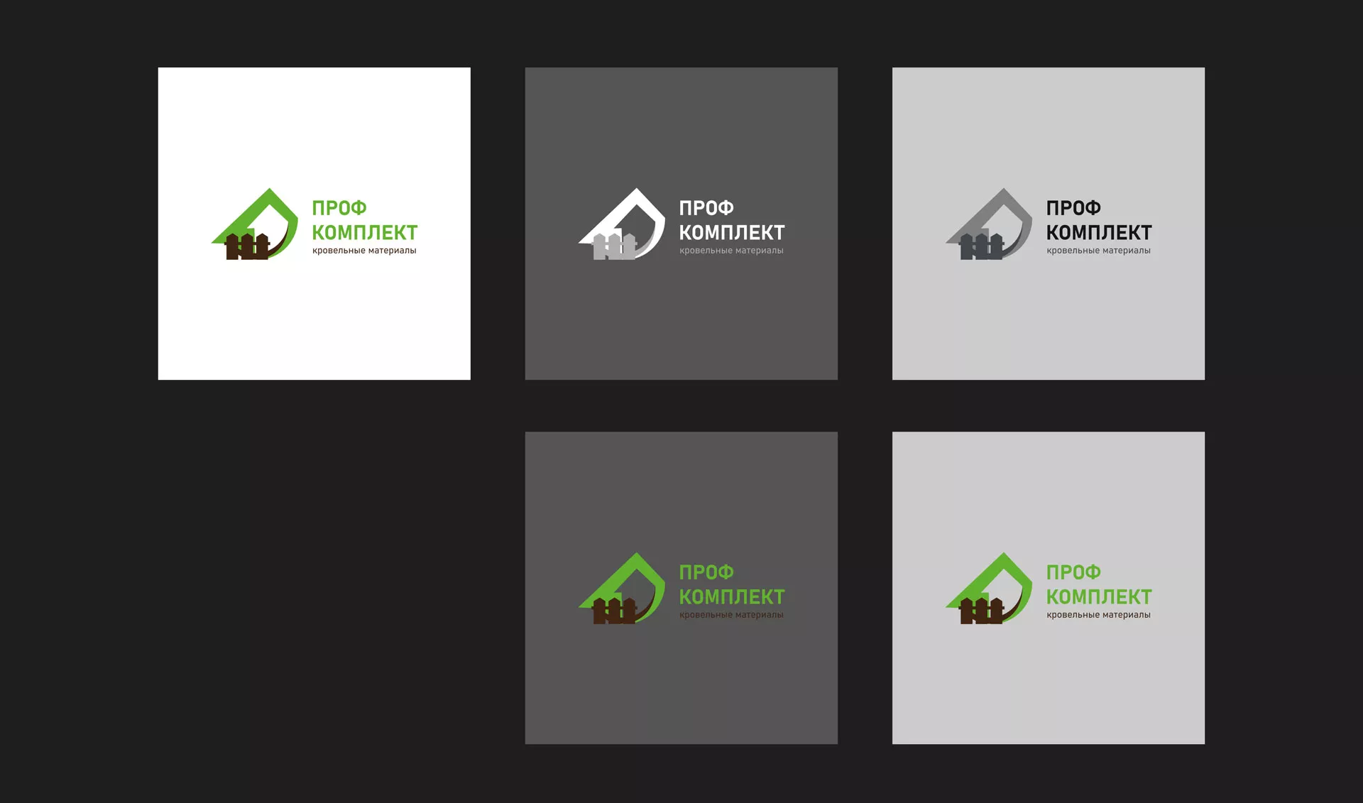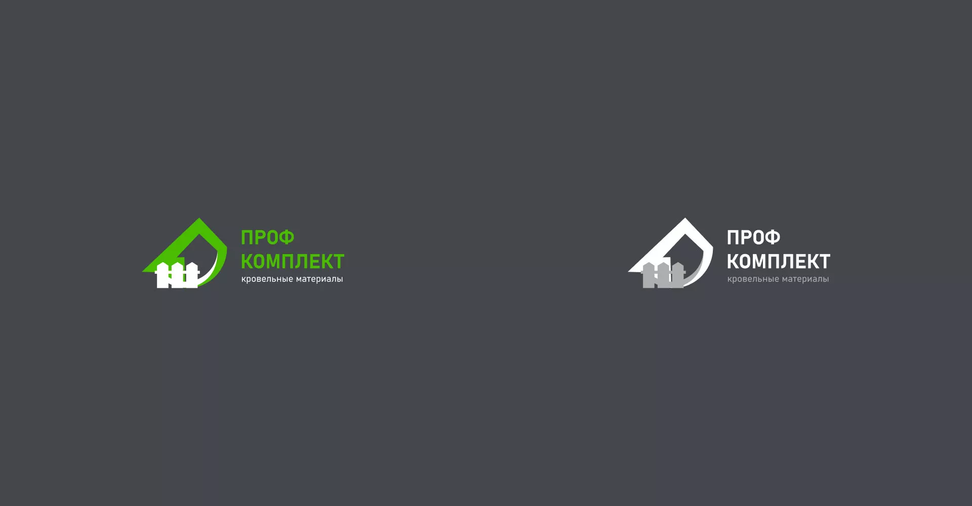Третий и финальный вариант логотипа компании «Проф Комплект» в Кудрово был утвержден заказчиком. Заключили в логическую устойчивую форму образы дома и забора из штакетника, которые нельзя было потерять исходя из технического задания. Выбрали более свежую и приятную цветовую гамму.