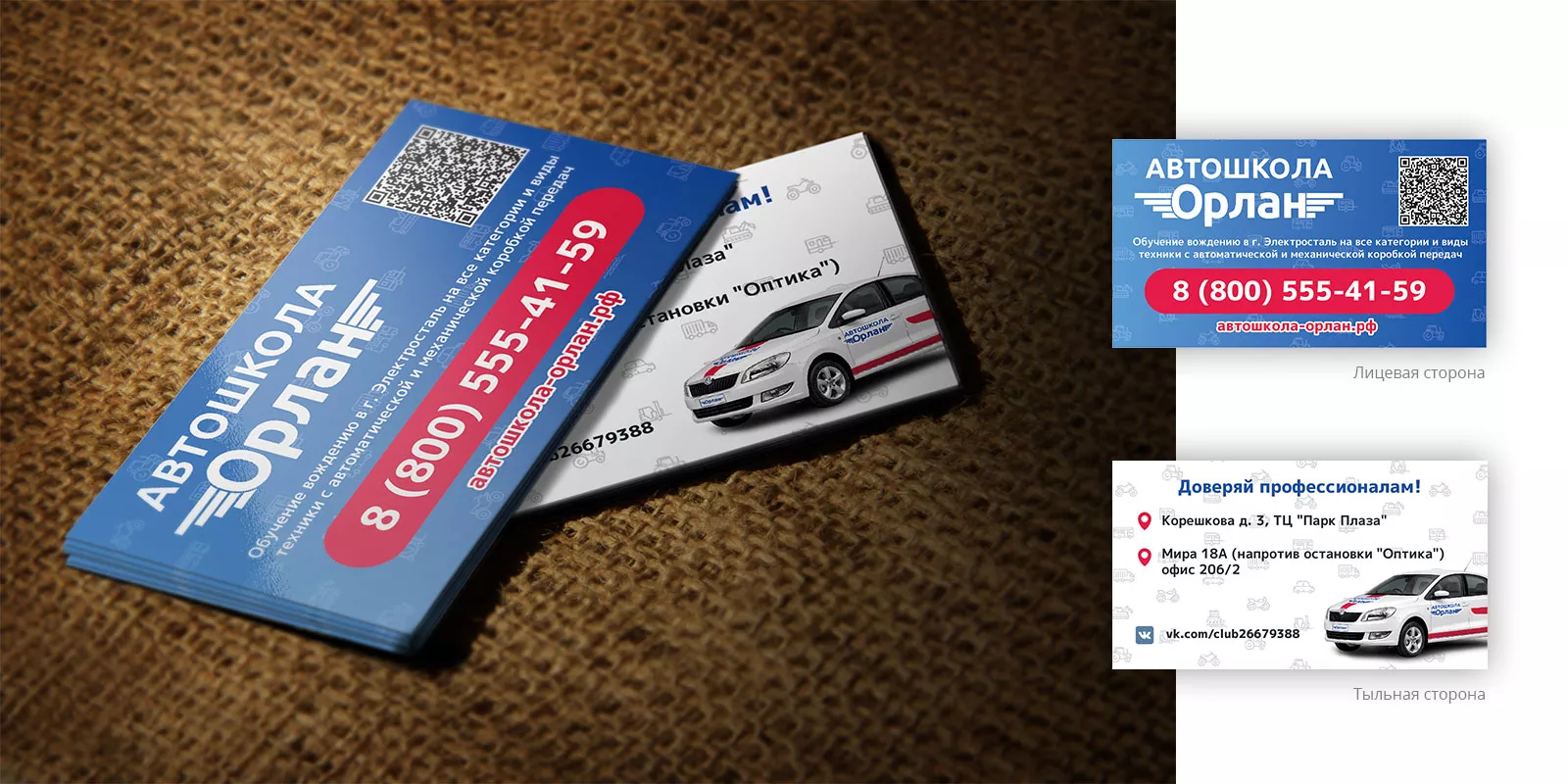 Разработка промо-визиток для автошколы «Орлан» в Кудрово