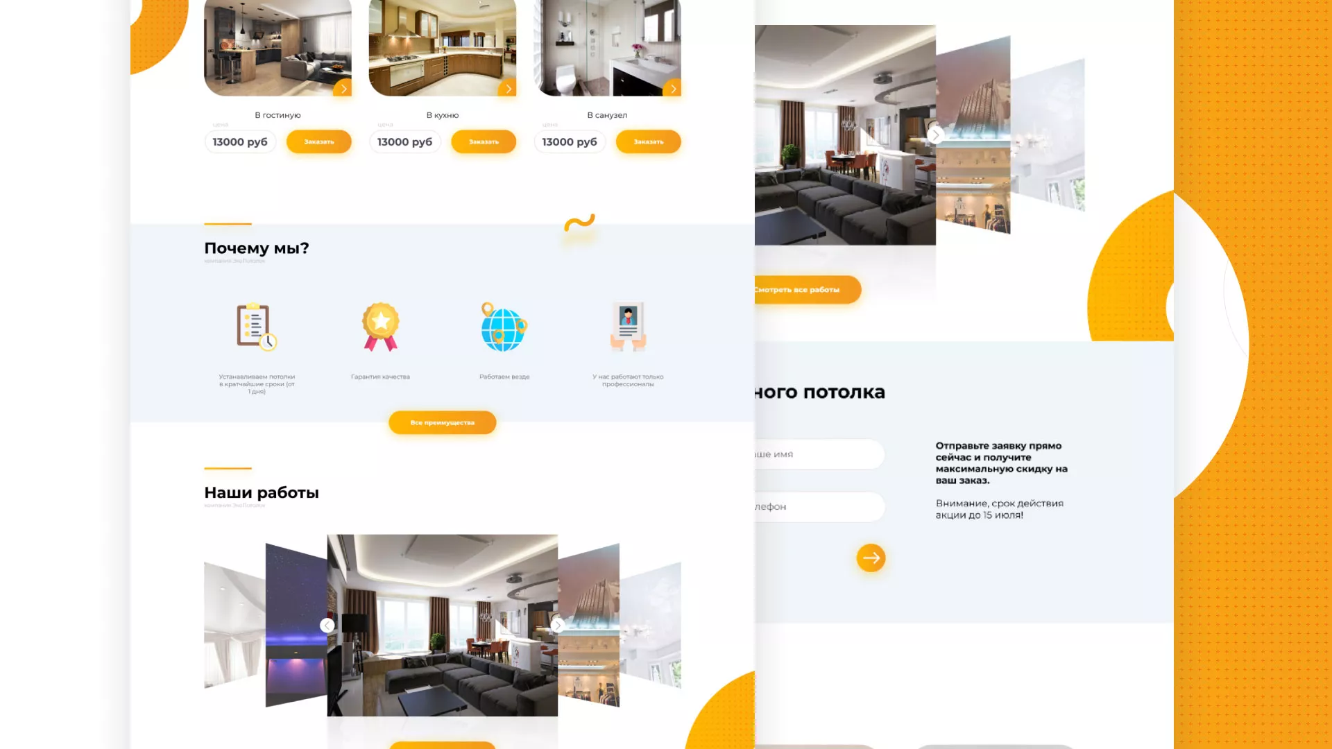 Вам нужна разработка сайта по натяжным потолкам в Кудрово? Специалисты компании «Мультзавод» готовы помочь! Мы предлагаем большой выбор уже готовых вариантов, а также можем создать и что-нибудь новое!