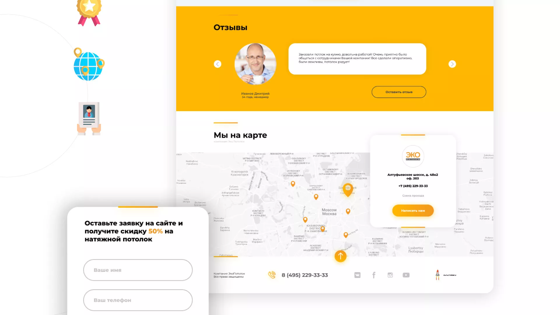 В нашем портфолио в Кудрово Вы можете найти большое количество вариантов готовых сайтов, среди которых есть и сайты по натяжным потолкам. Все проекты выполнены с учётом пожеланий заказчиков, многие из которых стали нашими друзьями.