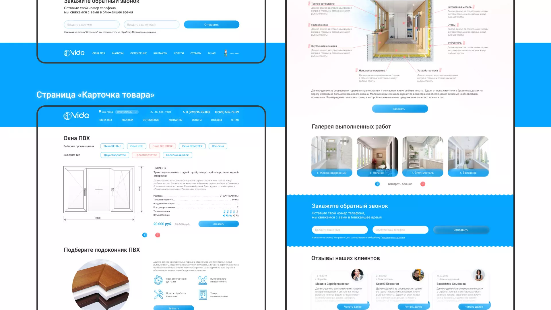 Задачей по проекту было — разработать светлый, дружелюбный дизайн сайта-каталога компании «Окна ВИДО» в Кудрово, интерфейс взаимодействия с пользователем и проработать внутренние страницы, наглядно отобразив информацию иллюстрациями.