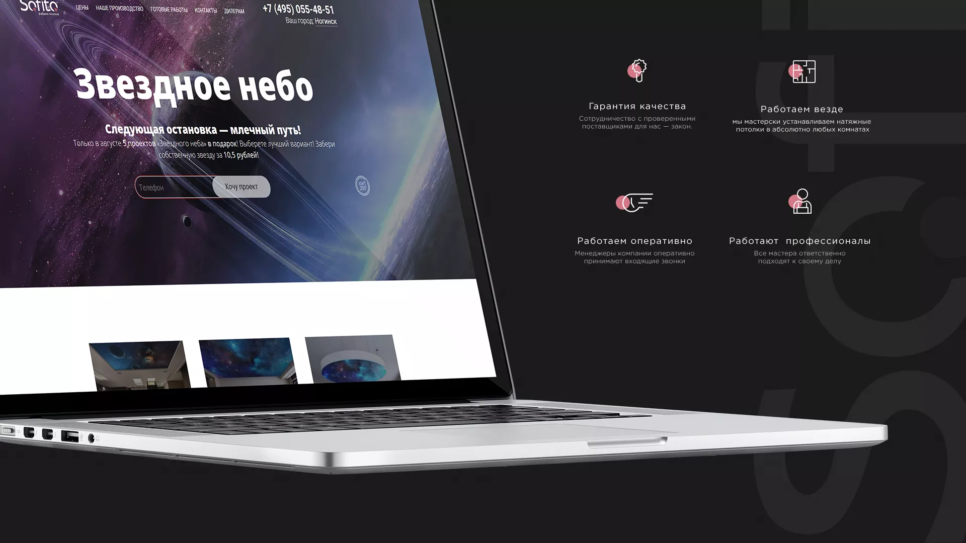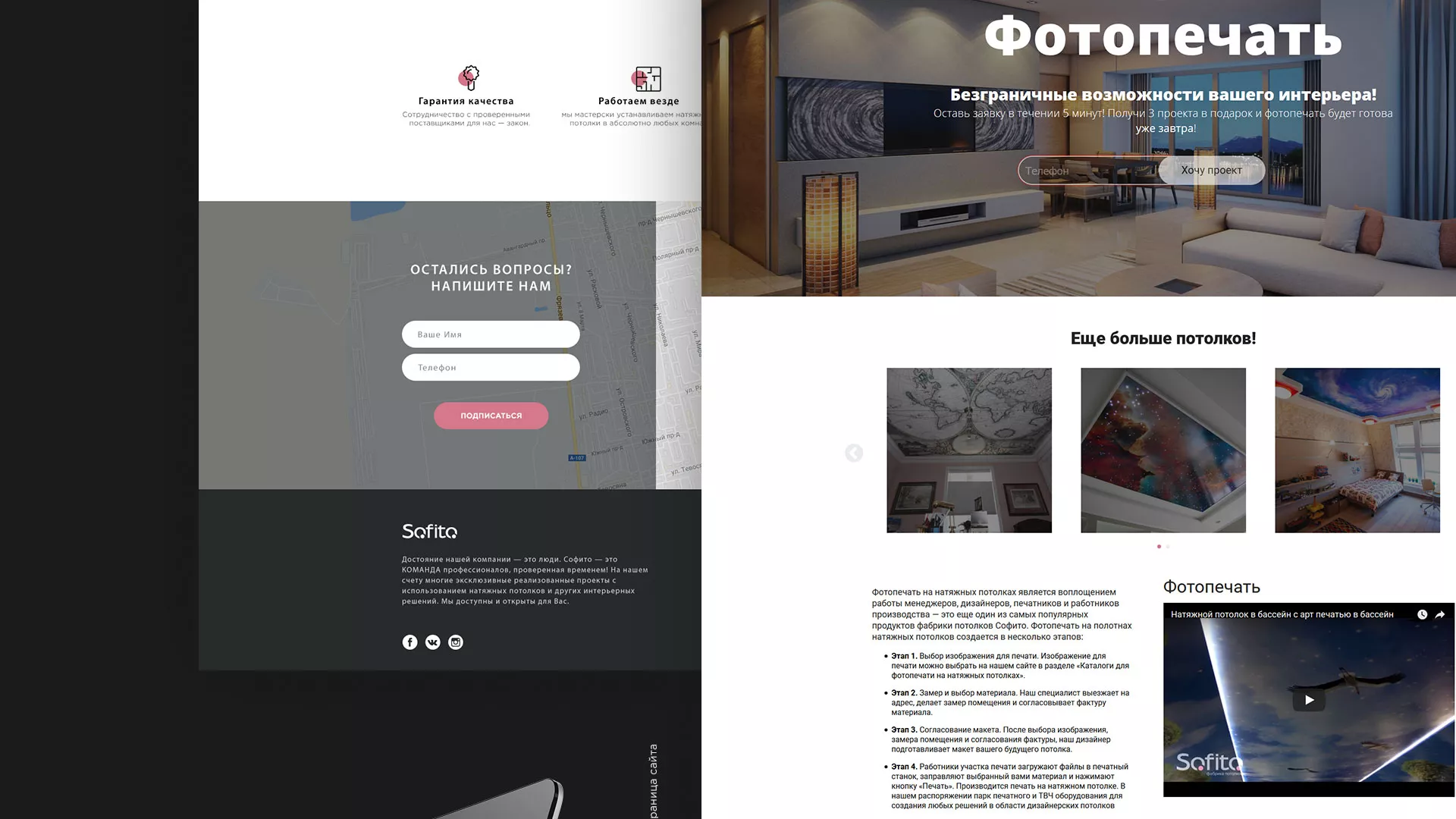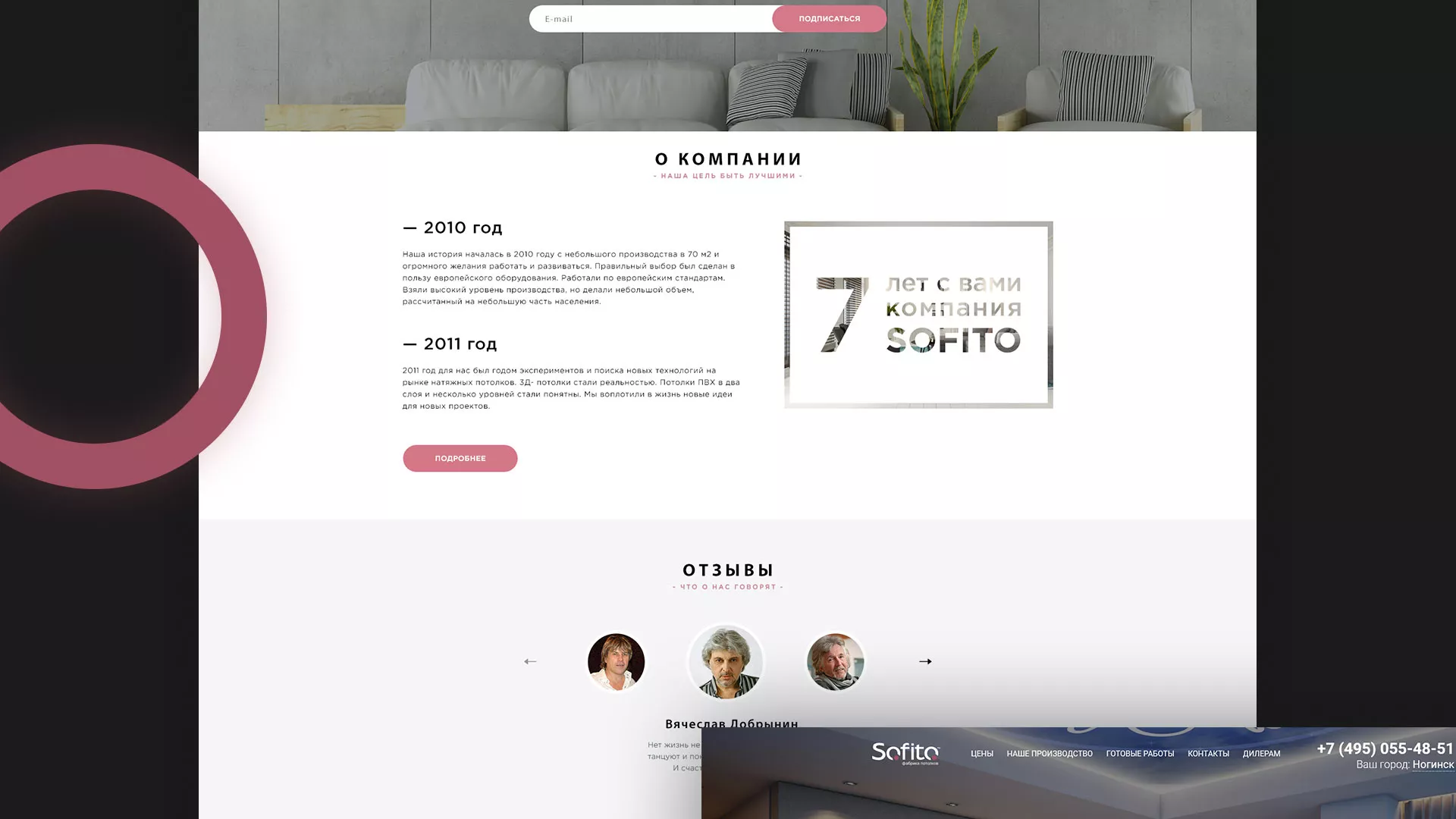 Достояние компании «Софито» — это люди. Фабрика потолков «Софито» — это команда профессионалов, проверенная временем! На счету компании многие эксклюзивные реализованные проекты в Кудрово с использованием натяжных потолков и других интерьерных решений.