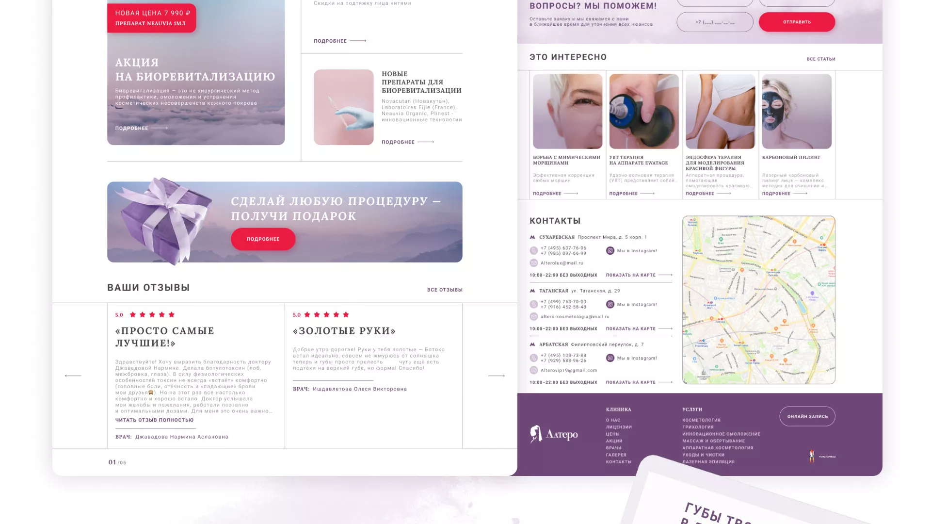 Сеть клиник эстетической косметологии «Алтеро» в Кудрово — это квалифицированные специалисты, новейшее оборудование, качественные препараты, эффективные и разнообразные методы лечения, индивидуальный подход с учетом физиологических особенностей и пожеланий пациента, доступные цены.